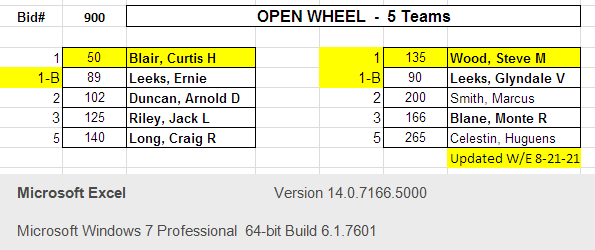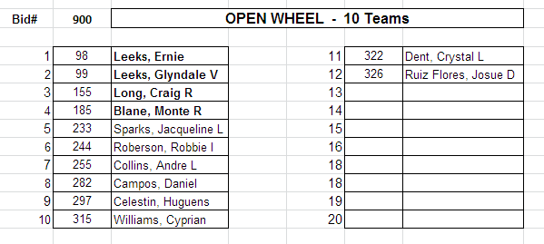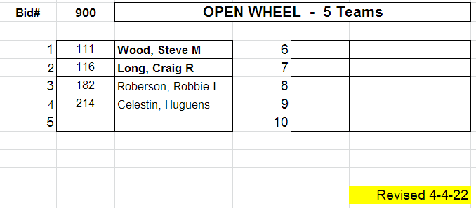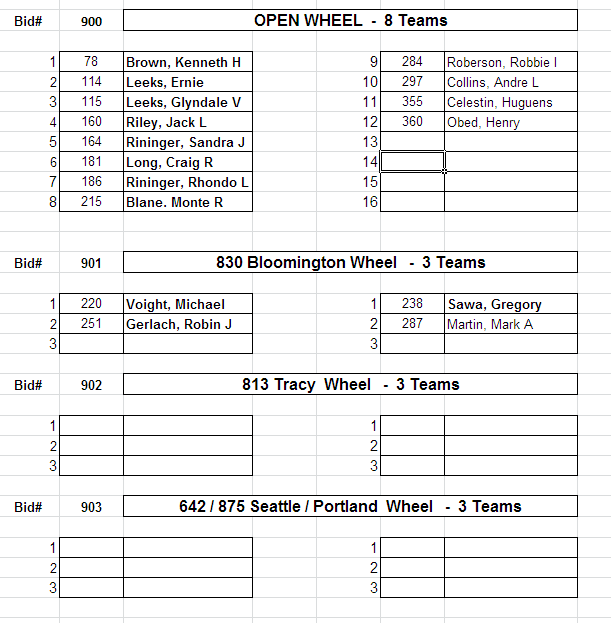 1200 - TEAM WHEEL POSTED - Bidding begins with