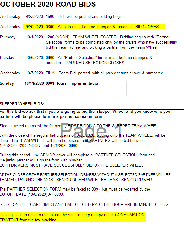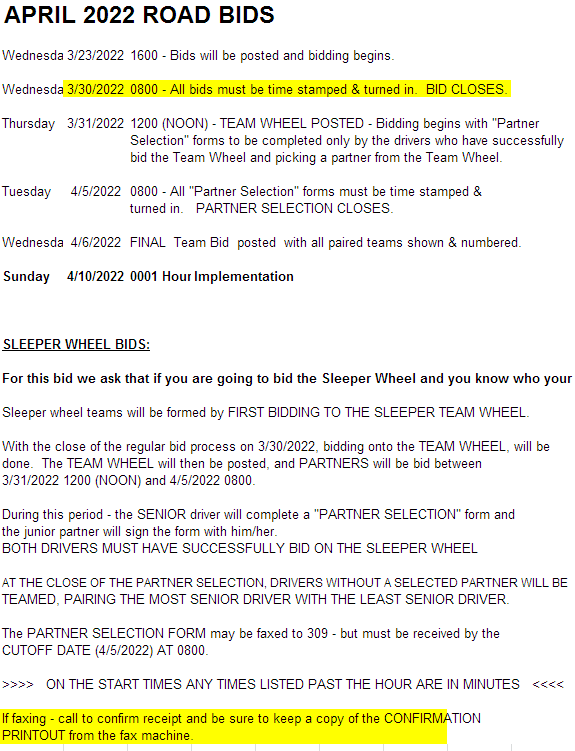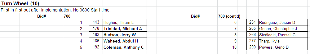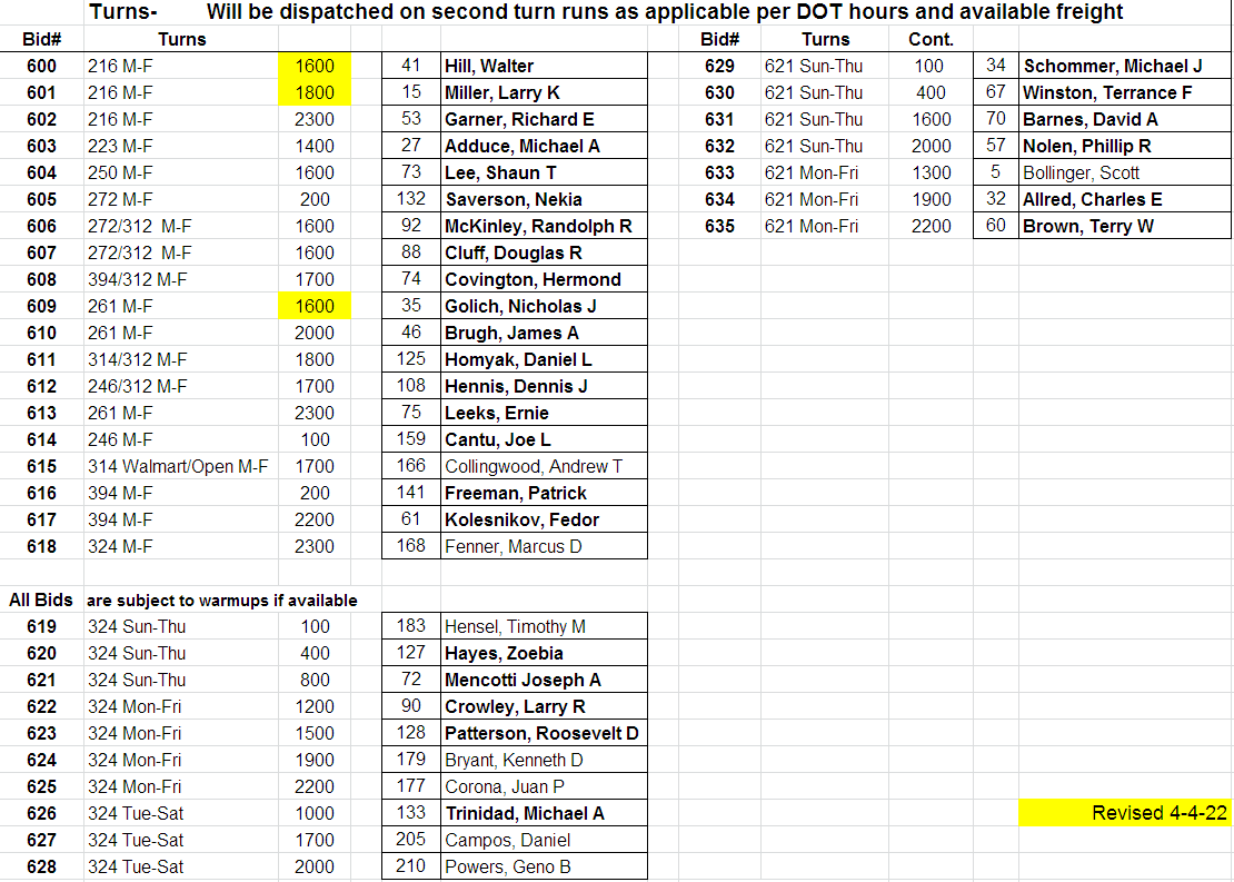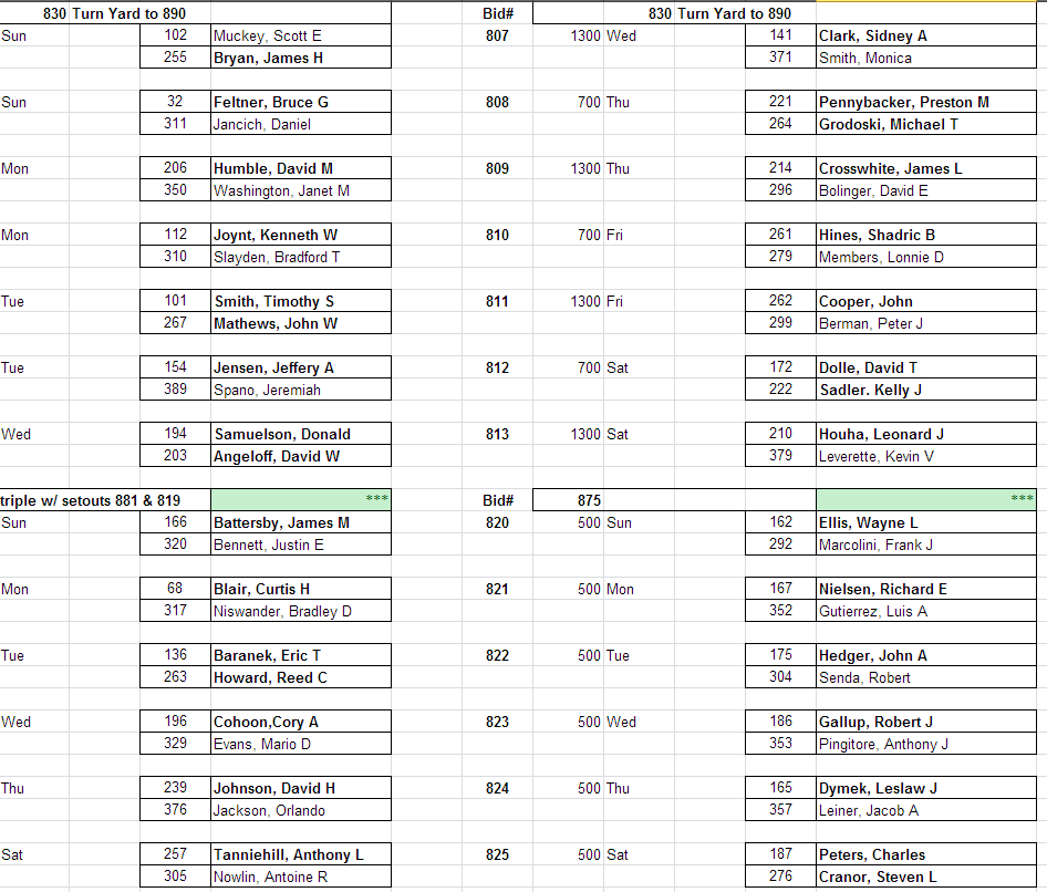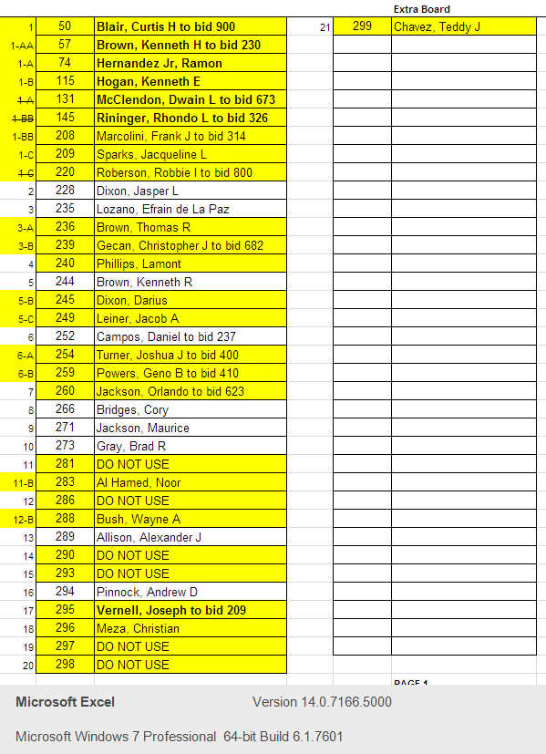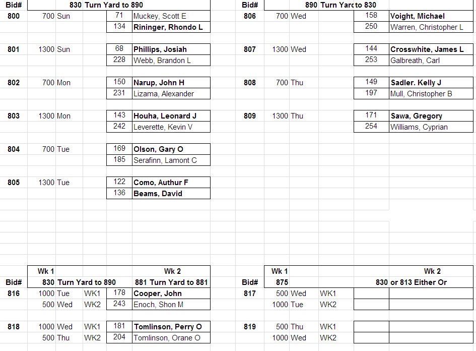 The Bids are Posted Below, But Keep in Mind That There will Be Changes Almost Right Away