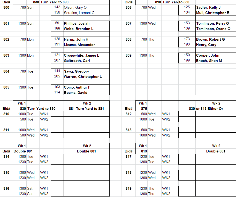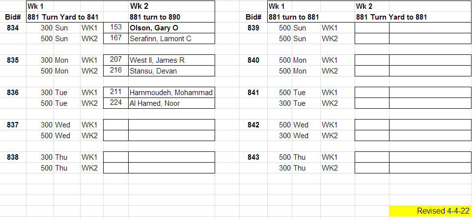 Wed 4/26/23 0800 All bids must be time stamped & turned in. Bid Closes