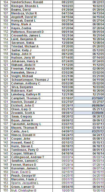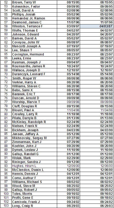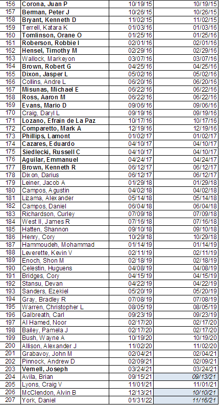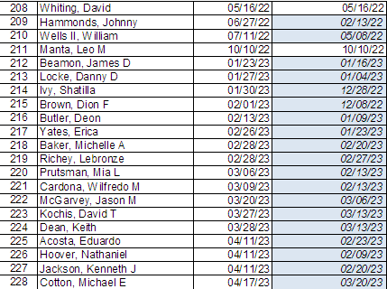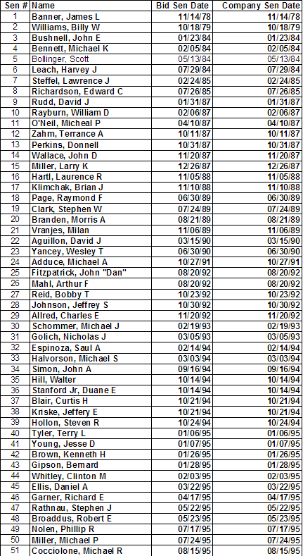 The seniority list below is current as of March 22, 2023. The bottom person working is 223.