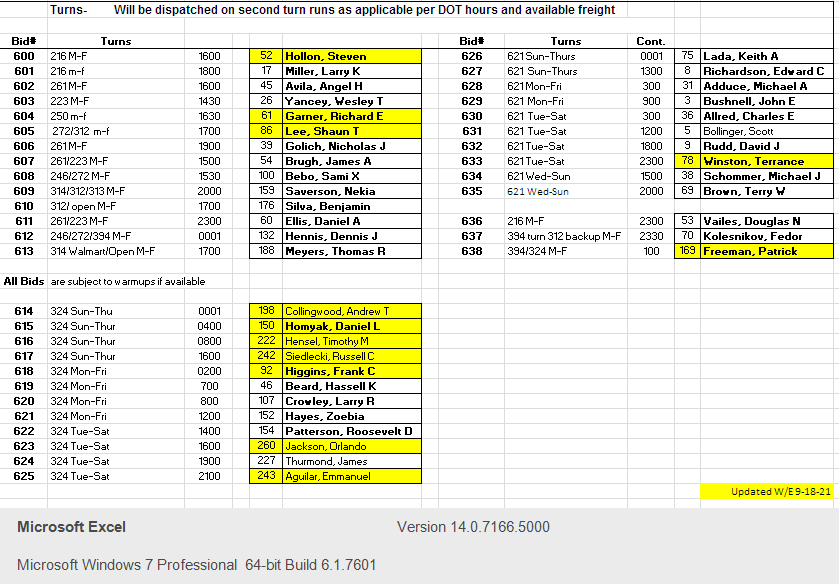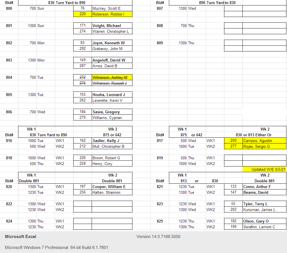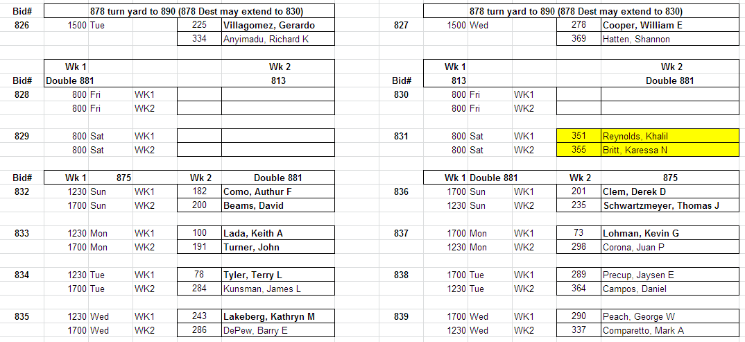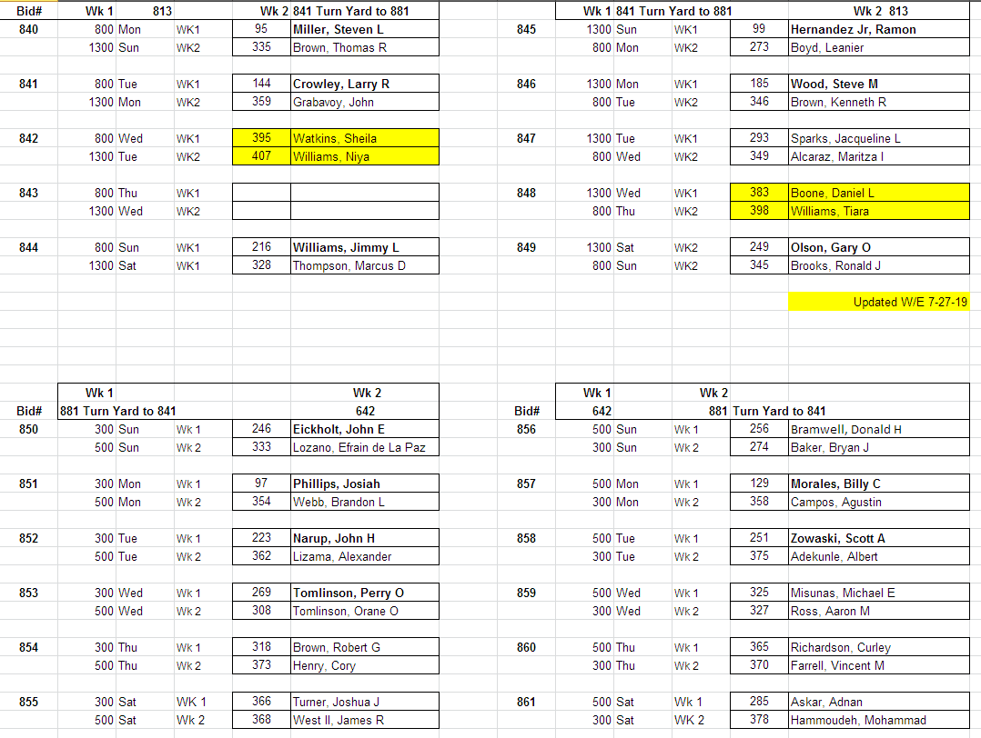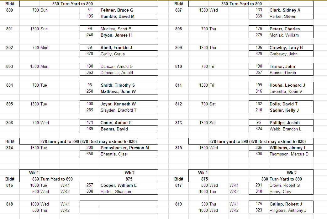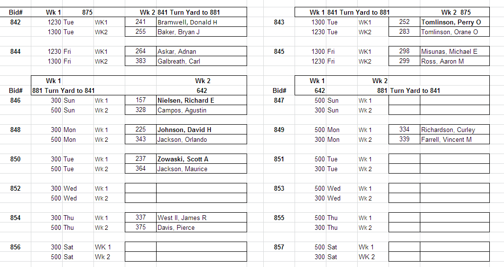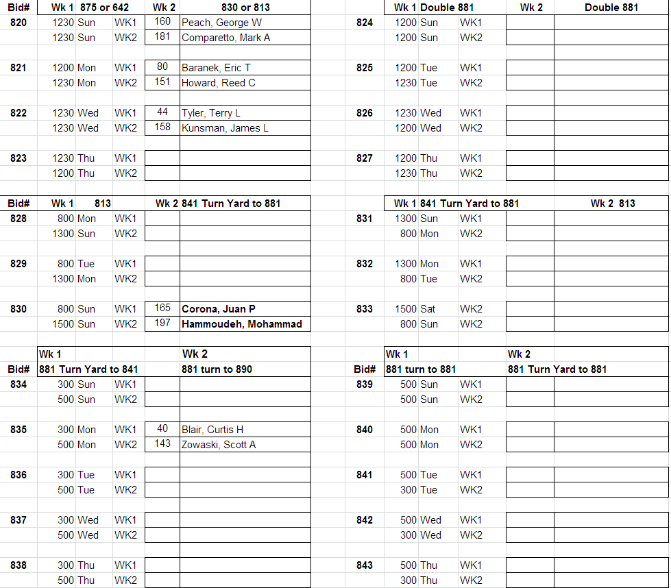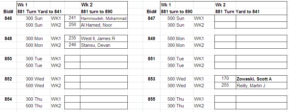 The Bids are Posted Below, But Keep in Mind That There will Be Changes Almost Right Away