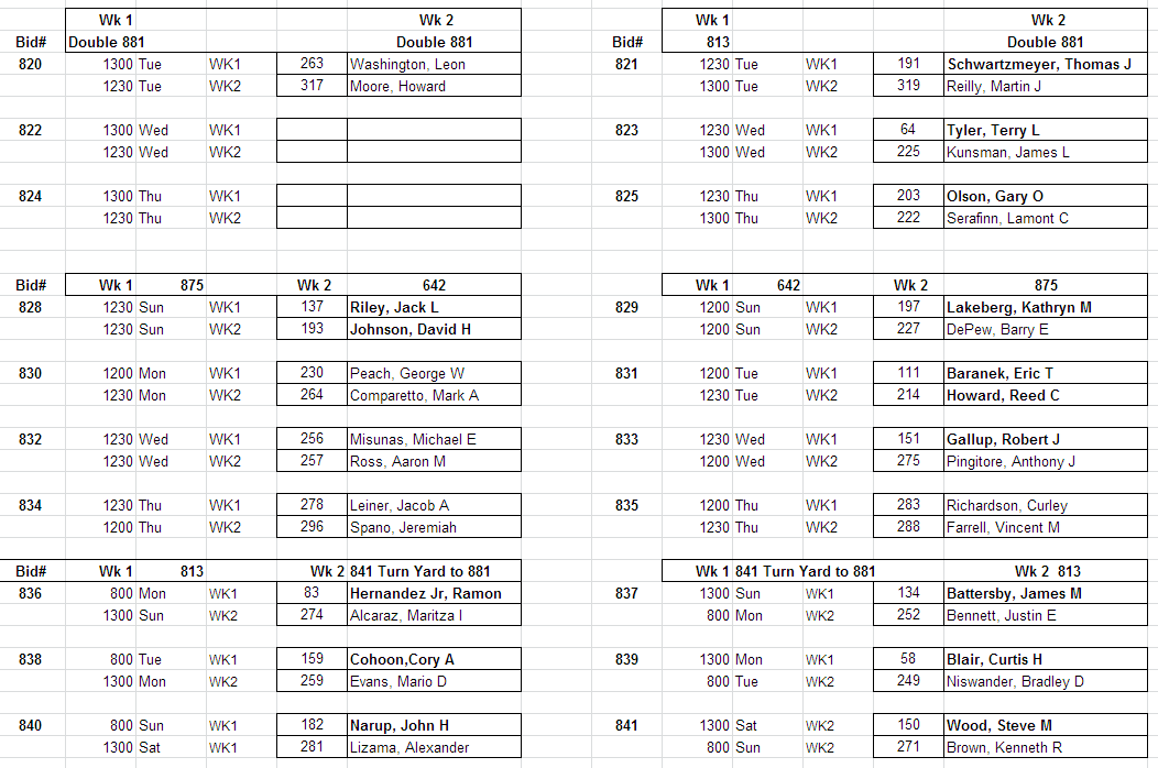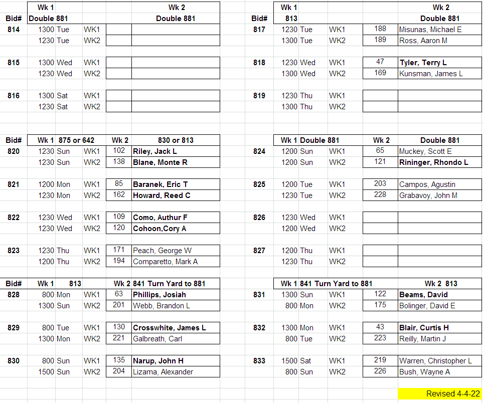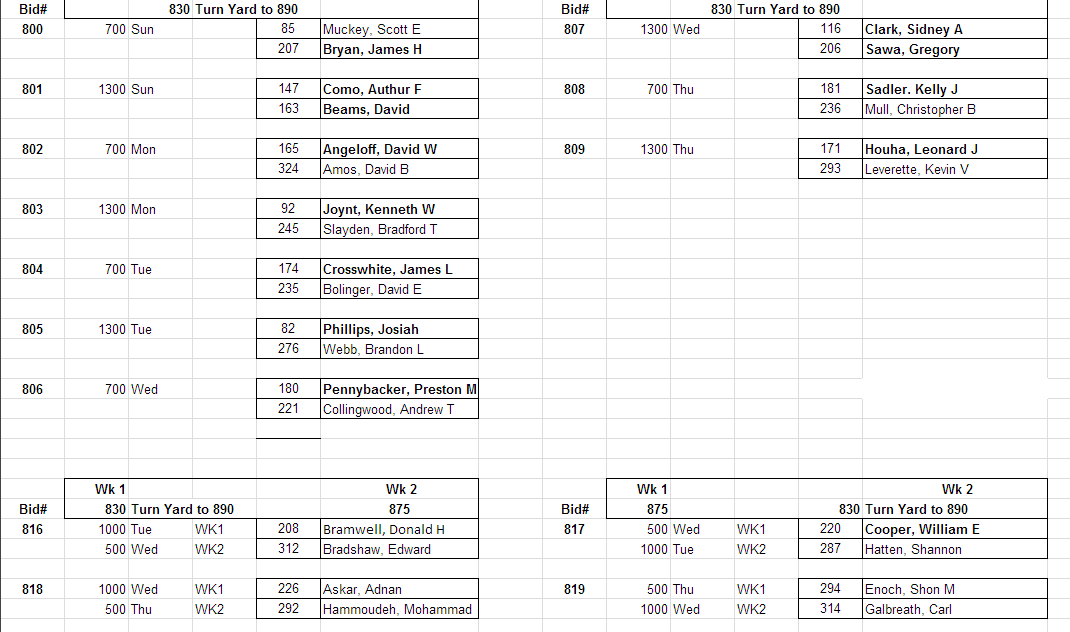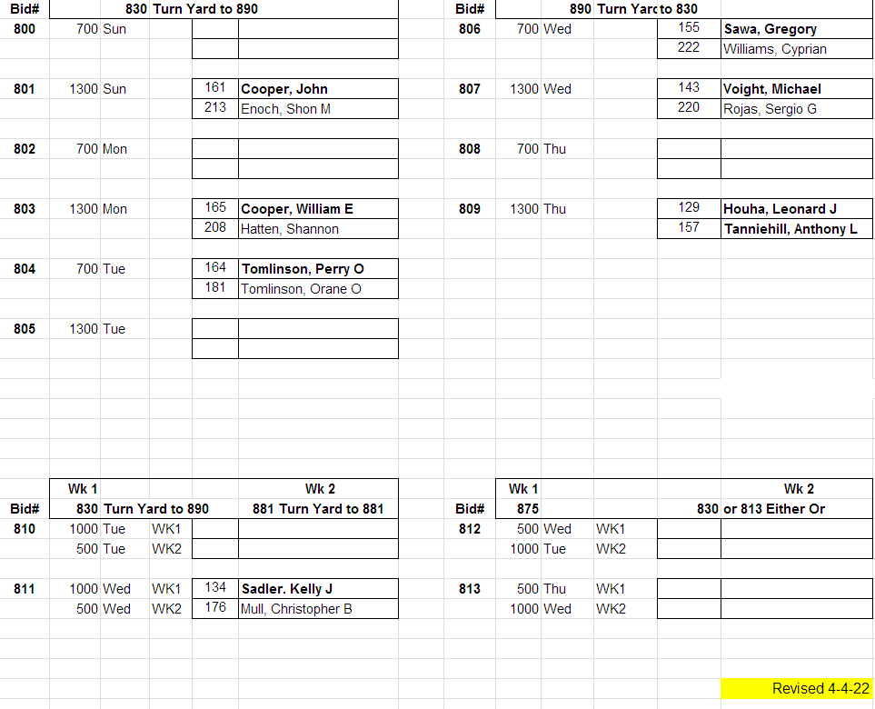 Wed 4/26/23 0800 All bids must be time stamped & turned in. Bid Closes