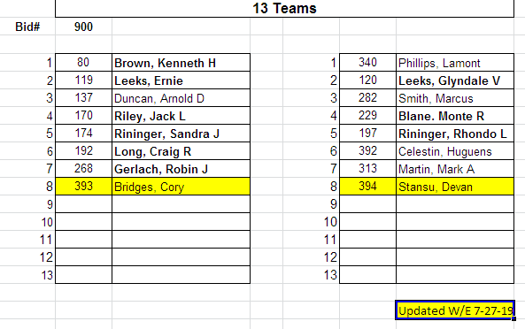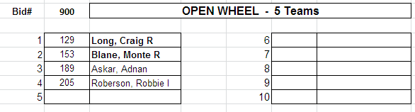 1200 - TEAM WHEEL POSTED - Bidding begins with